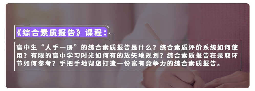 高中生“人手一册”的综合素质报告是什么?综合素质评价系统如何使用?有限的高中学习时光如何有的放矢地规划?综合素质报告在录取环节如何参考?手把手地帮您打造一份富有竞争力的综合素质报告。