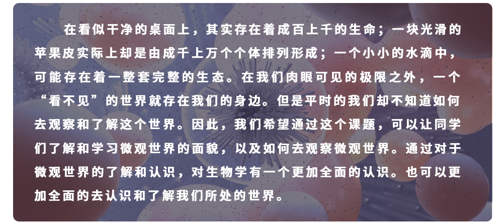本课题属于生物学方向,适合对生物学感兴趣的同学。本课题侧重于显微学成像及其技术的了解和学习。在研究过程中,不仅会了解显微成像技术的原理和应用,还会加深对于显微图像的了解。显微图像作为细胞学研究的基本技术,也是进行生物学研究的一项基本技能。学习本课题,不仅可以加深对于高中生物学知识的理解,同时也会为大学的学习打下基础。